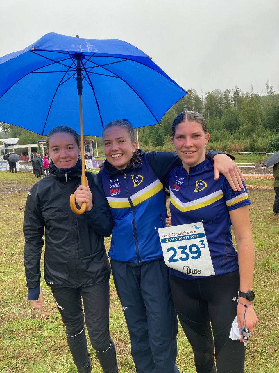 Elsa startade stafetten perfekt med att växla som 3:a efter förstasträckan trots att ha sprungit en stor del av banan själv i den ganska svårorienterade terrängen. Många löpare bommade särskilt i början av banan. Tilde följde upp med ett fint lopp på sträcka 2. Hon kom in som 17:e lag efter att ha sprungit mot många 20-åringar. Irma förvaltade placeringen, som till slut blev 17:e plats.